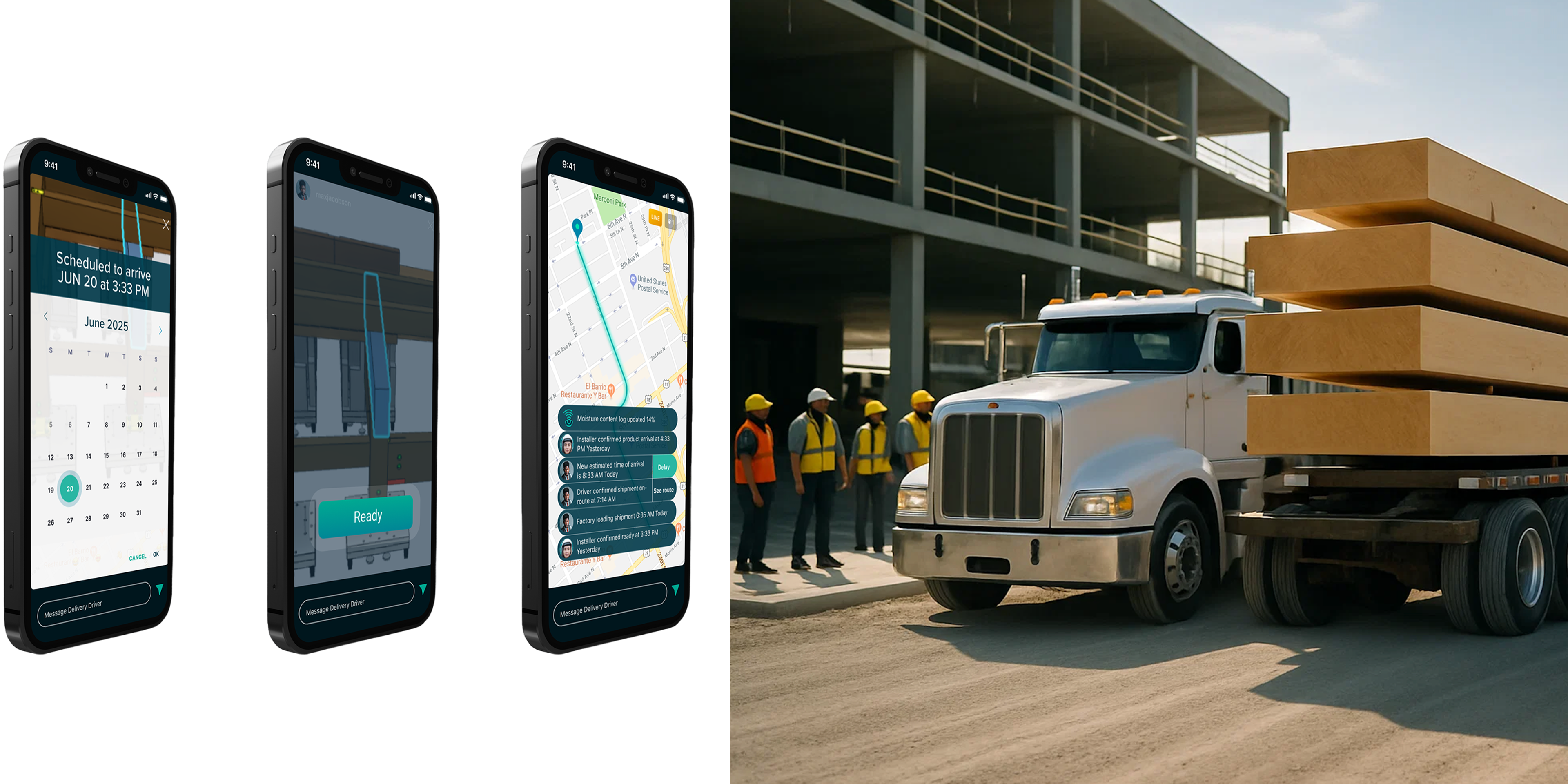 Crews were losing valuable crane hours due to unclear delivery timing and communication breakdowns between fabrication, dispatch, and site leads. This tool aimed to streamline delivery scheduling for CLT and glulam installs by providing real-time visibility into available windows and load status.